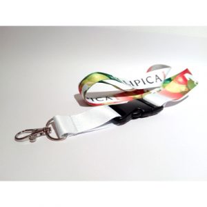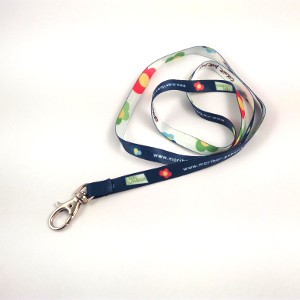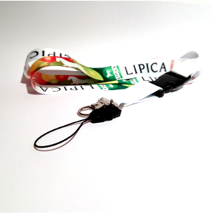 Ovratni trakovi s tiskom, širine 15 mm in dolžine 900 mm, ki so natisnjeni s sublimacijskim tiskom, so personalizirani z logotipi in napisi. Ta vrsta tiska omogoča natančen tisk vseh barv pantone. Trak lahko natisnete na obeh straneh z dvema različnima grafikama. Če na primer uporabite kontrastne barve na ozadju, boste dobili zares originalen trak. Med dodatki, ki jih lahko izberete, so: vrtljiv karabin, varnostna zaponka, ključna zaponka, vrvica za telefon in še mnogi drugi. Na en sam trak lahko povežete več dodatkov.